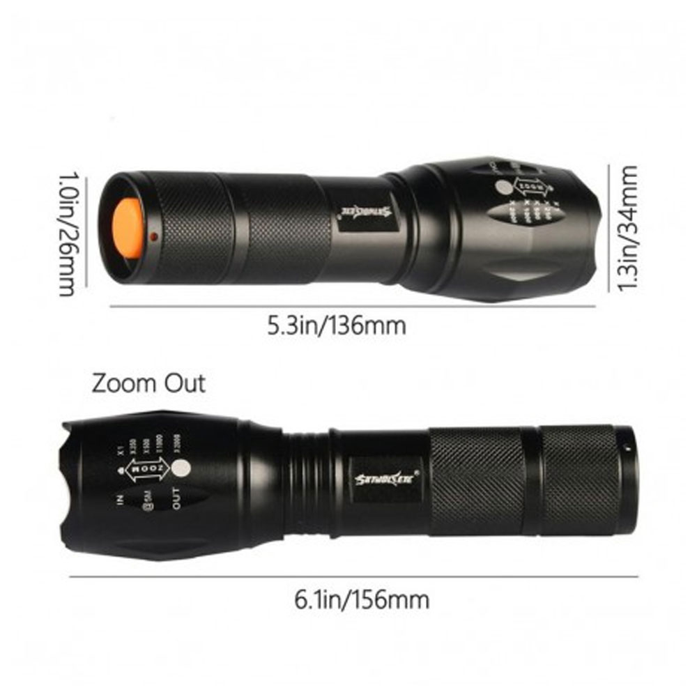Latarka zaprojektowana została z myślą o profesjonalnych i taktycznych zastosowaniach. Wyposażona została w najmocniejszą na rynku diodę LED – T6. Posiada 5 trybów świecenia: mocny, średni, jasny, słaby, stroboskop, SOS.