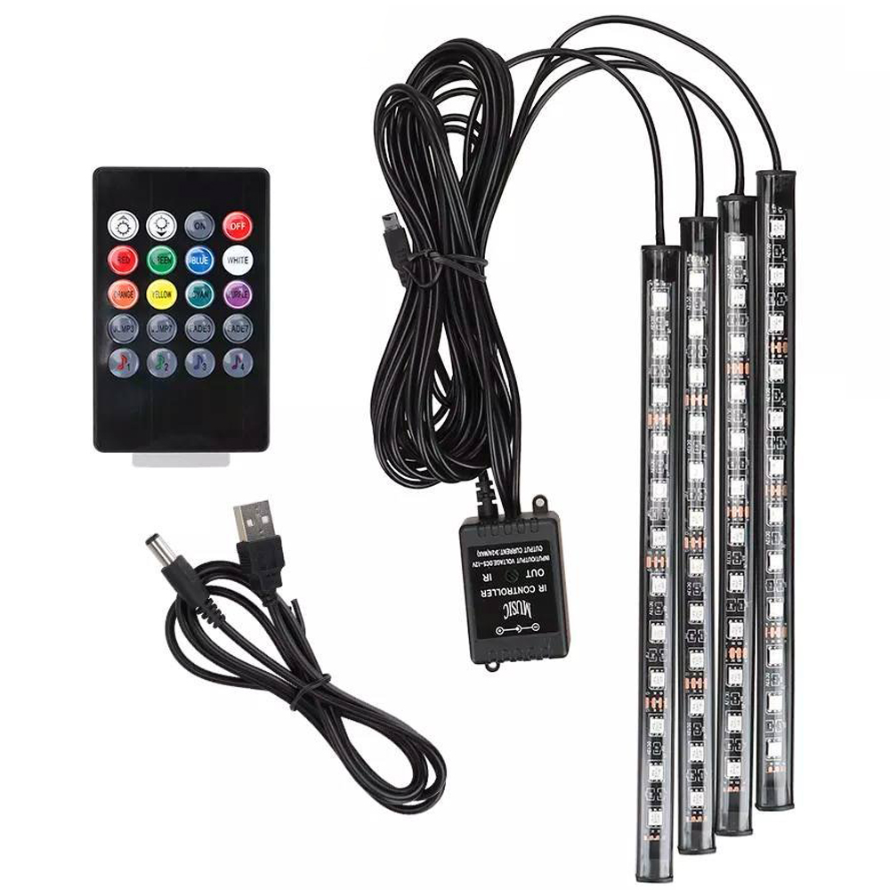OŚWIETLENIE WNĘTRZA SAMOCHODU LISTWY LED RGB 48 DIOD