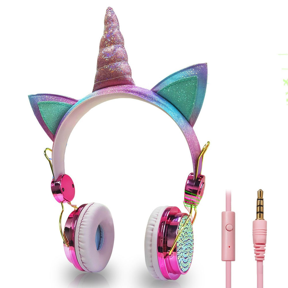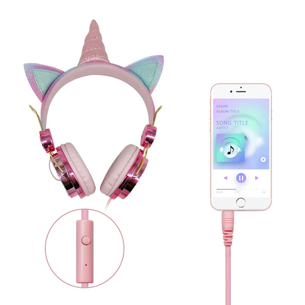 Słuchawki róg jednorożca dla dzieci z wbudowanym mikrofonem