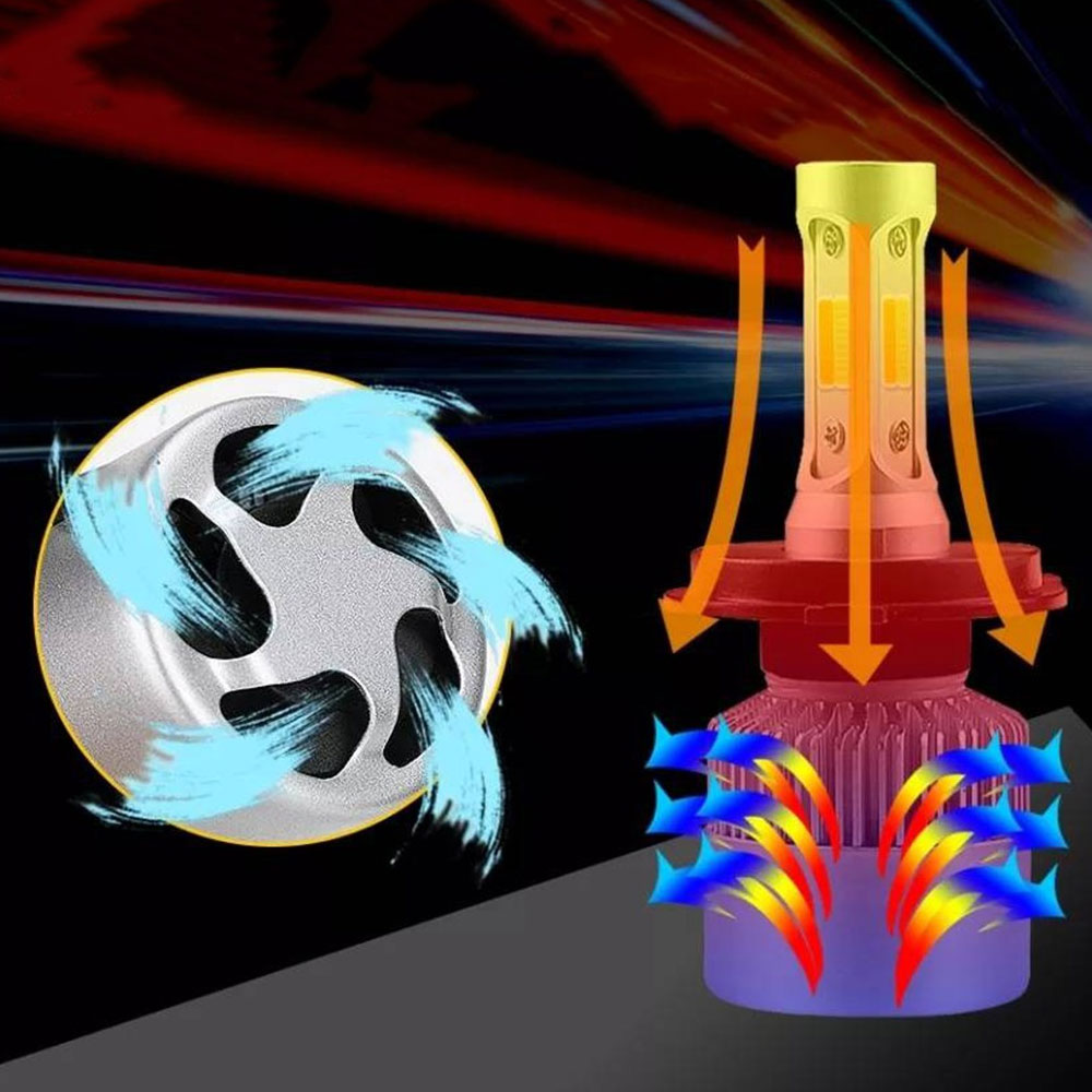 Optymalne rozmieszczenie diod oraz odpowiednia geometria umożliwia uzyskanie oczekiwanej linii odcięcia oraz kąta padania światła, a tym samym maksymalnego efektu świetlnego żarówek LED. Ich konstrukcja oraz budowa pozwala na maksymalne dopasowanie żarówki do gniazda. Aluminiowy radiator żarówki jest silnie, termo przyswajalny. Żarówka jest wyposażona w wydajny turbowentylator – 12000 obrotów na minutę z aktywnym chłodzeniem, które polega na redukcji wysokości temperatury.